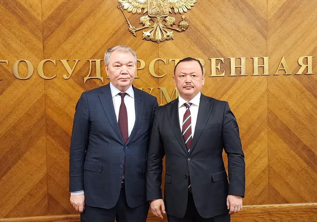 Жогорку Кеңештин Эл аралык иштер, коргоо, коопсуздук жана миграция боюнча комитетинин төрагасы Улан Примов РФнын Федералдык Жыйынынын Мамлекеттик Думасынын КМШ иштери, евразиялык интеграция жана мекендештер менен байланыштар боюнча комитетинин төрагасы Леонид Калашников менен жолугушту.