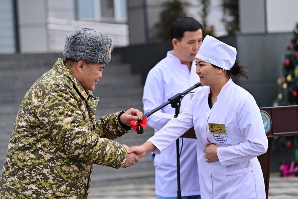 УКМК төрагасы апасы Алийма Ташиева атындагы эне жана баланы коргоо борборунун кызматкерлерине 35 автокөлүк тапшырды.