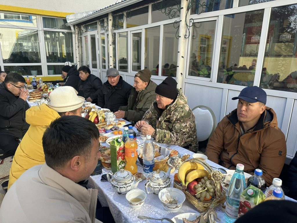 Мындан тышкары, объектте иш алып барып жаткан куруучулар үчүн чай уюштурулуп, мэр алар менен бир дасторкондо олтуруп баарлашты.
