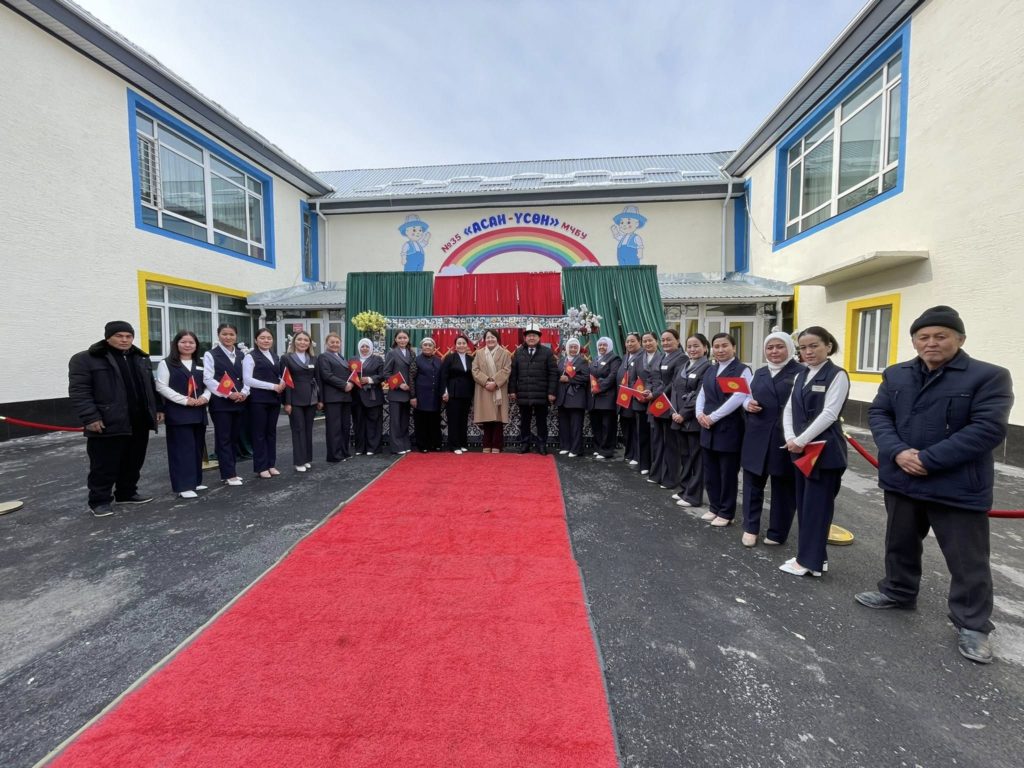 Ош шаарынын А.Масалиев көчөсүндөгү “Асан-Үсөн” бала бакчасына кошумча курулган 100 орундуу имаратынын ачылыш аземи болду.