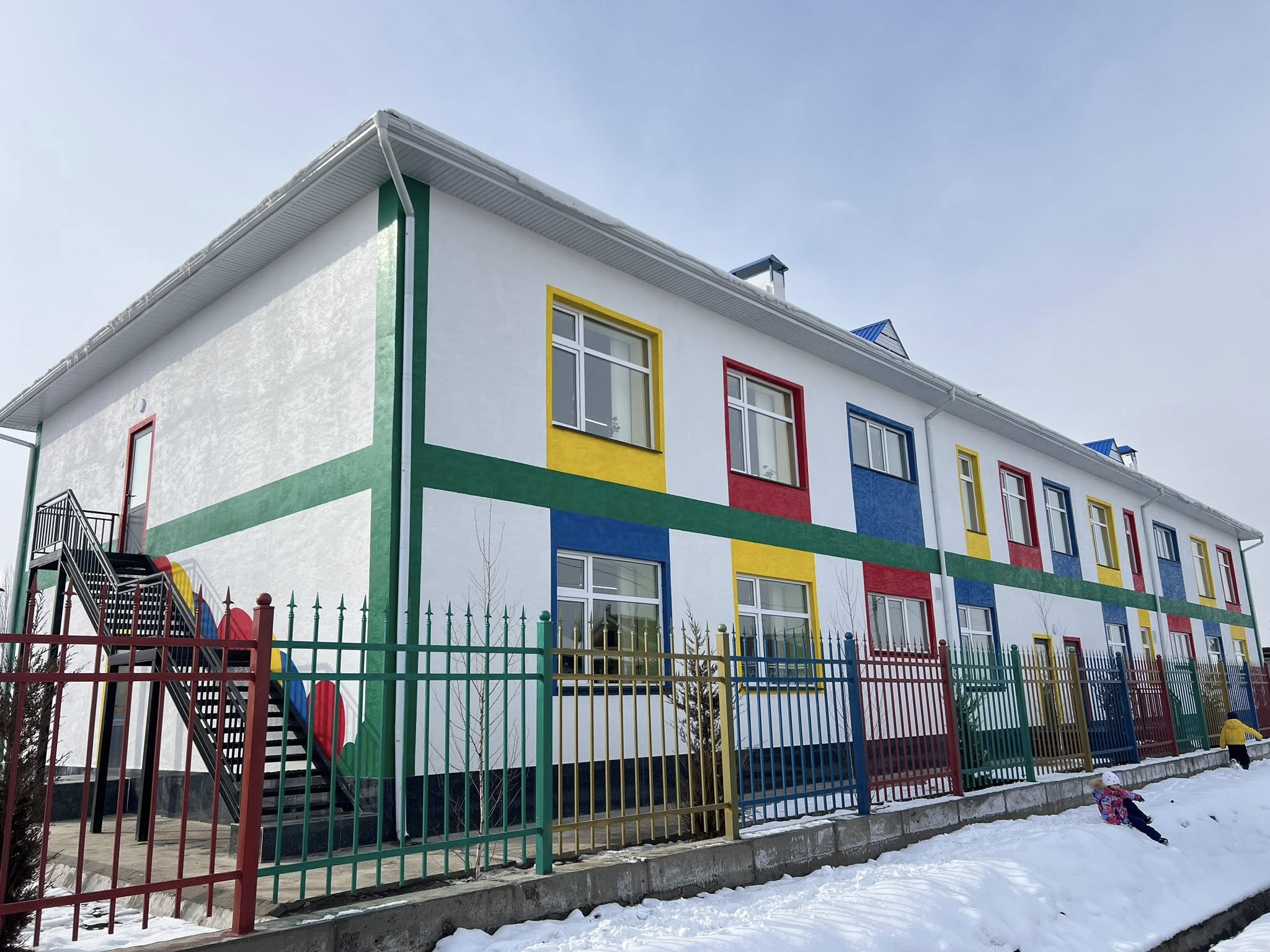 Эки кабаттан турган жаңы бала бакча заманбап талаптарга жооп берген шарттар менен камсыздалып, 100 орундуу.