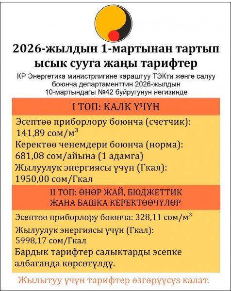 Ал эми жылытуунун тарифи өзгөрүлгөн эмес.