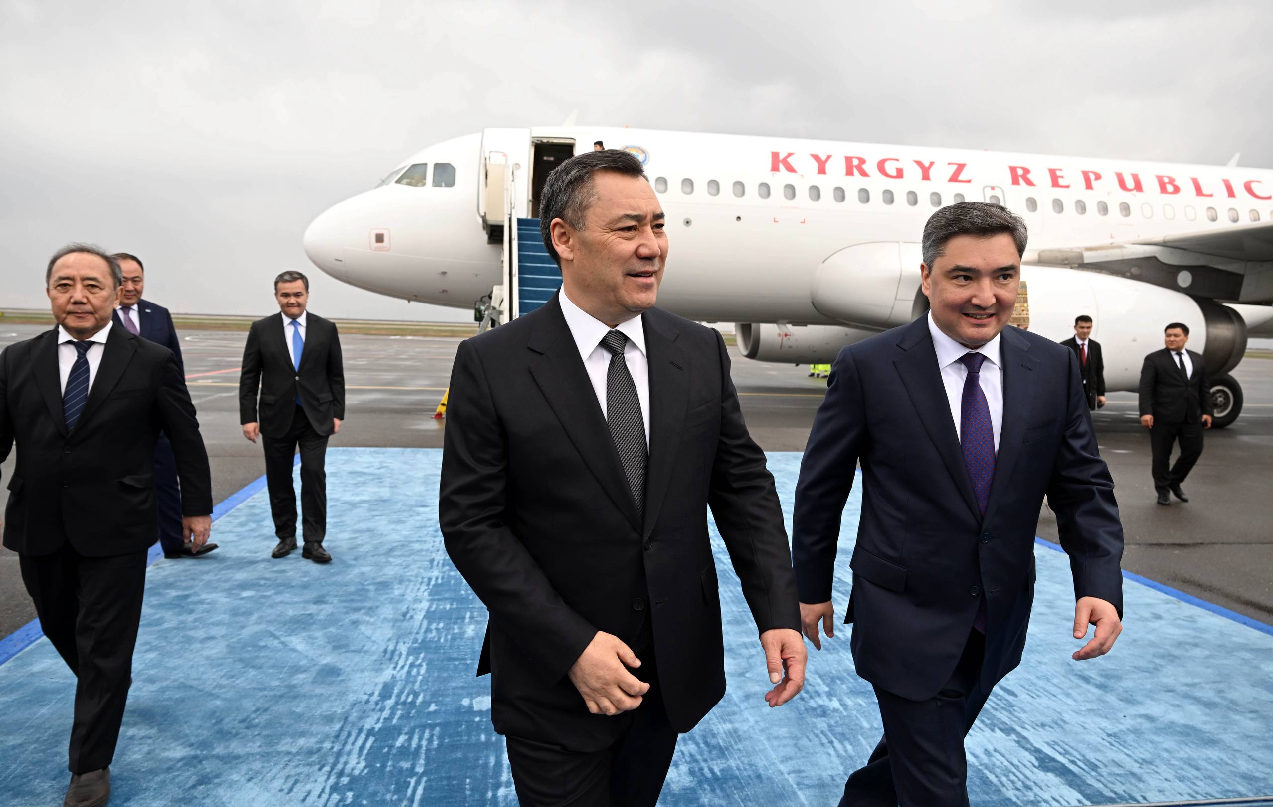 Президент Садыр Жапаровду Казакстан Республикасынын премьер-министри Олжас Бектенов тосуп алды.